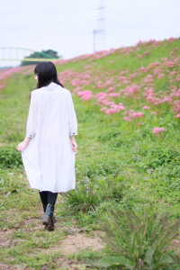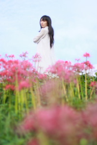 紗緒様ロケ撮影in彼岸花のある河川敷